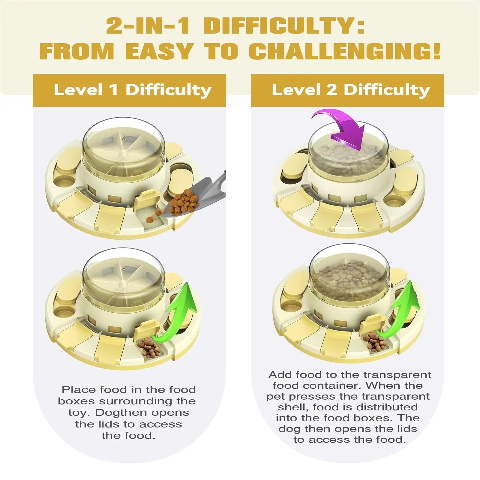 [Dog Puzzle Toy from the United States, an American Brand with a U.S. Patent],[Innovative Design] This is the perfect dog puzzle toy and a truly effective slow feeder. Unlike traditional dog puzzle toys, it features a centralized food dispensing system activated by pressing the top cover. The toy integrates 2 levels of difficulty into 1, offering gameplay options ranging from Level 1 to Level 2, all within a single design. Give your beloved dog the perfect gift—KADTC puzzle toys for birthdays and every special holiday!